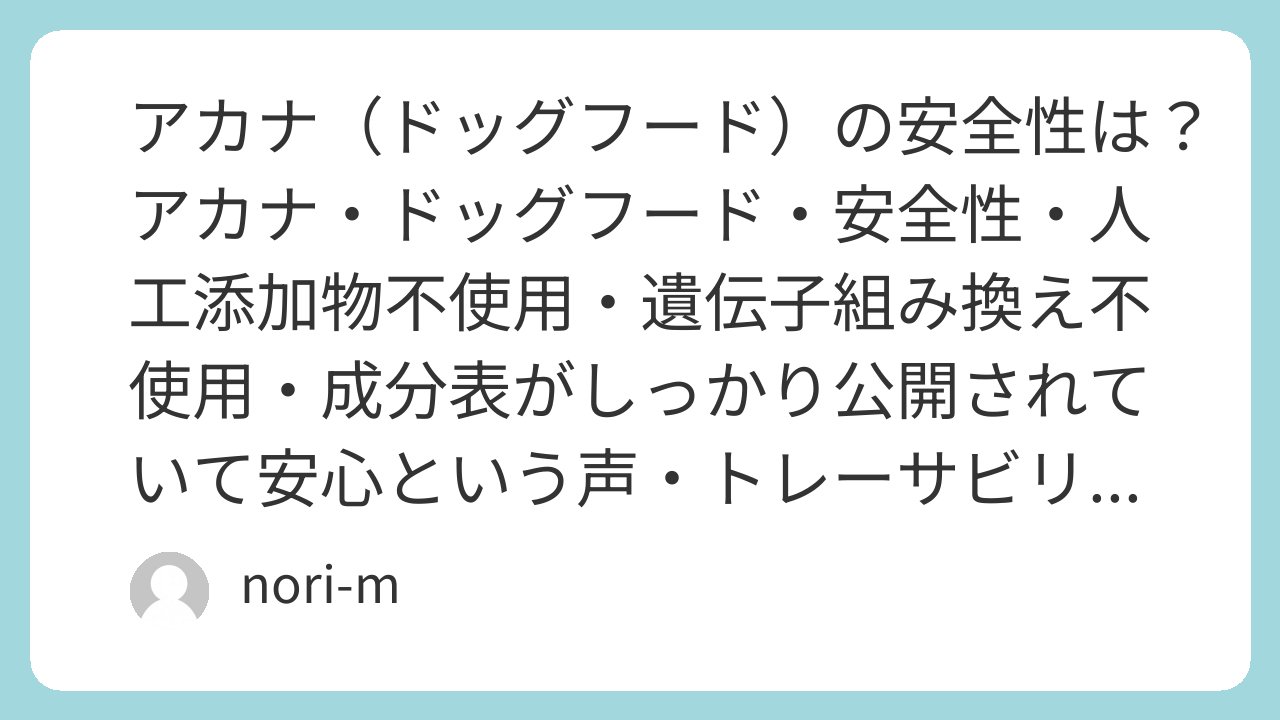 アカナ(ドッグフード)の安全性は?アカナ・ドッグフード・安全性・人工添加物不使用・遺伝子組み換え不使用・成分表がしっかり公開されていて安心という声・トレーサビリティまで解説